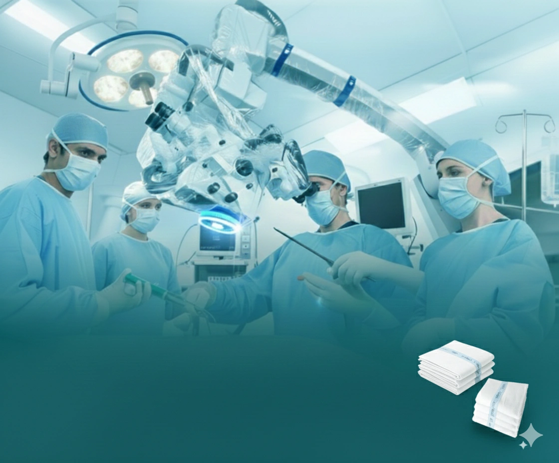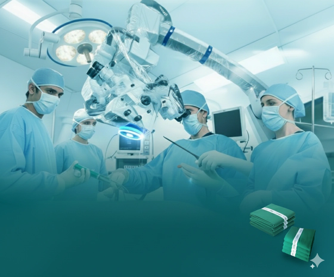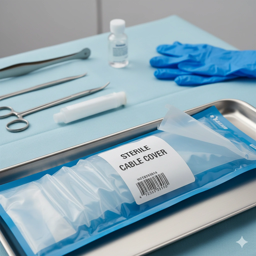 We manufacture a wide range of sterile medical drapes and covers including Camera Covers, Cable Sleeve Covers, Cryo Probe Covers, Plain Drapes (Green & White), Eye Drapes, Microscope Covers, and Neuro Microscope Covers. All products are gamma-sterilised and designed for medical and surgical use.